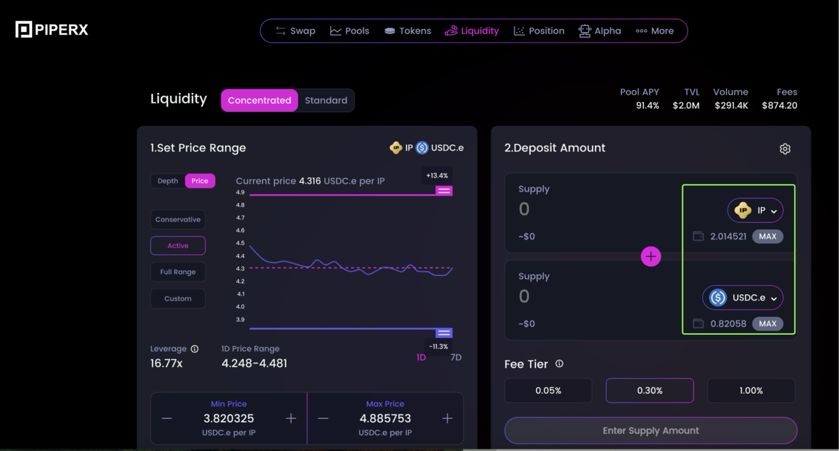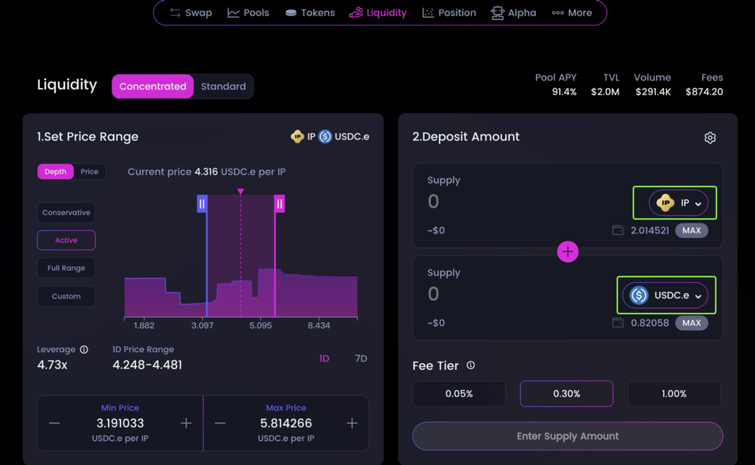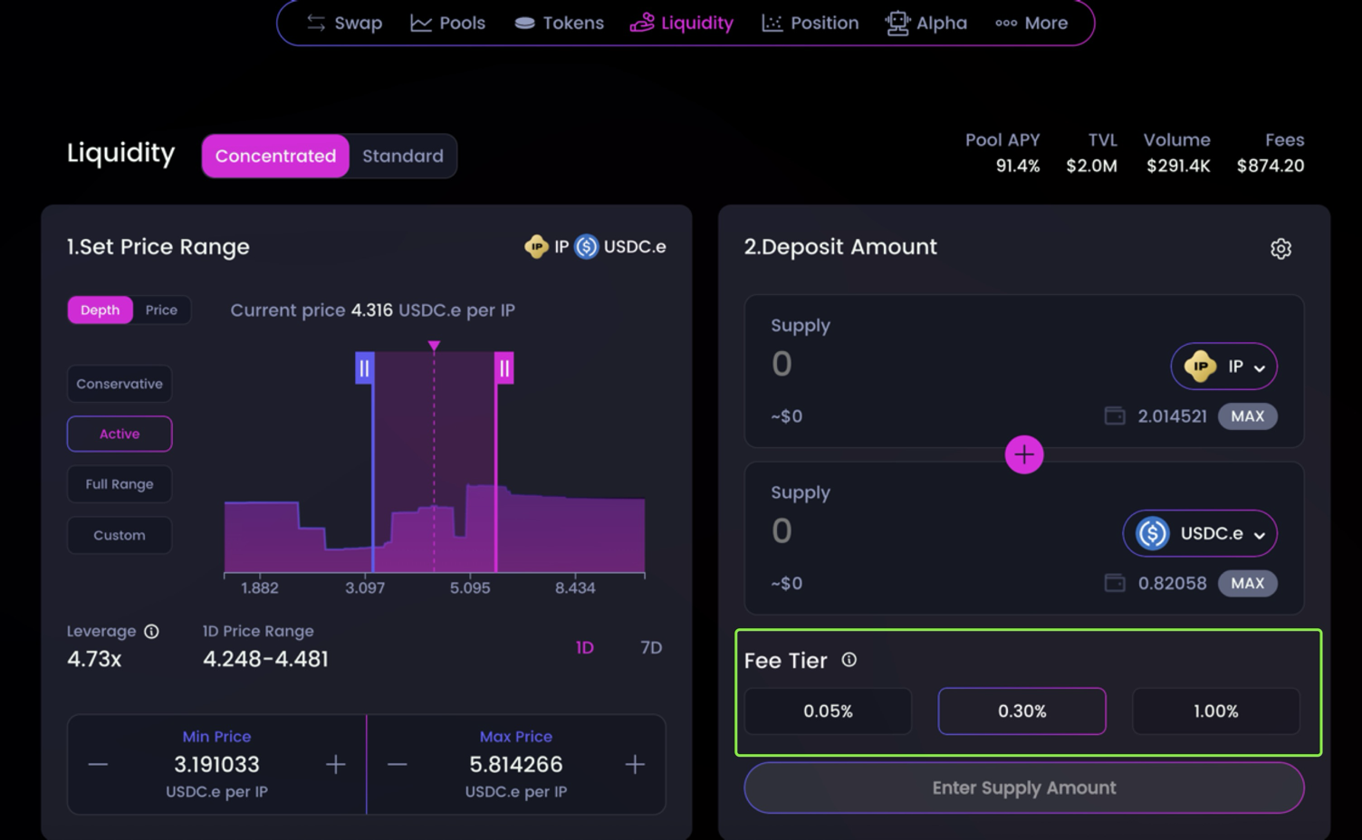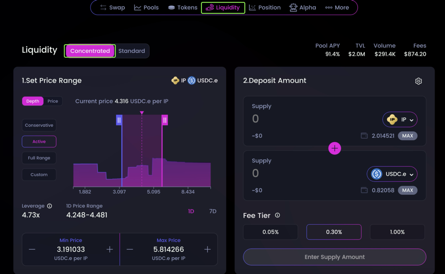 1. Select "**Liquidity**" in navigation menu and select "Concentrated" liquidity pools.&#x20;