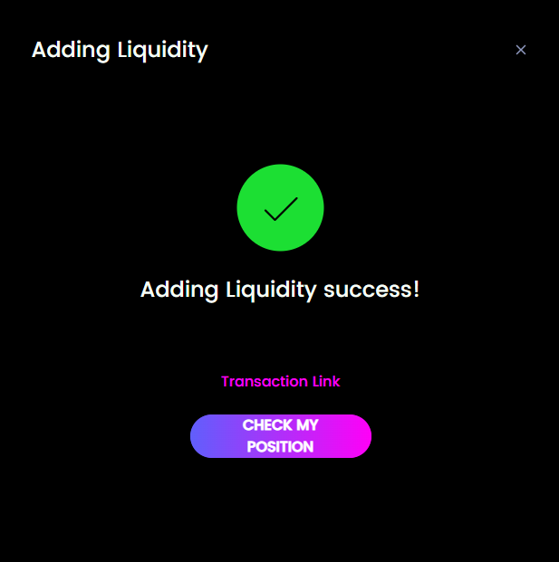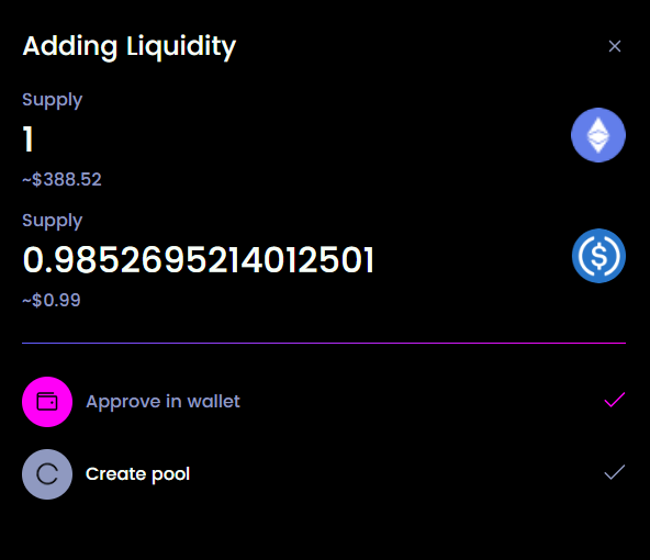 6. You’ve entered all needed parameters, you can submit to create the pool and approve your wallet to add initial liquidity. You’ll get your position NFT after your liquidity is successfully added.